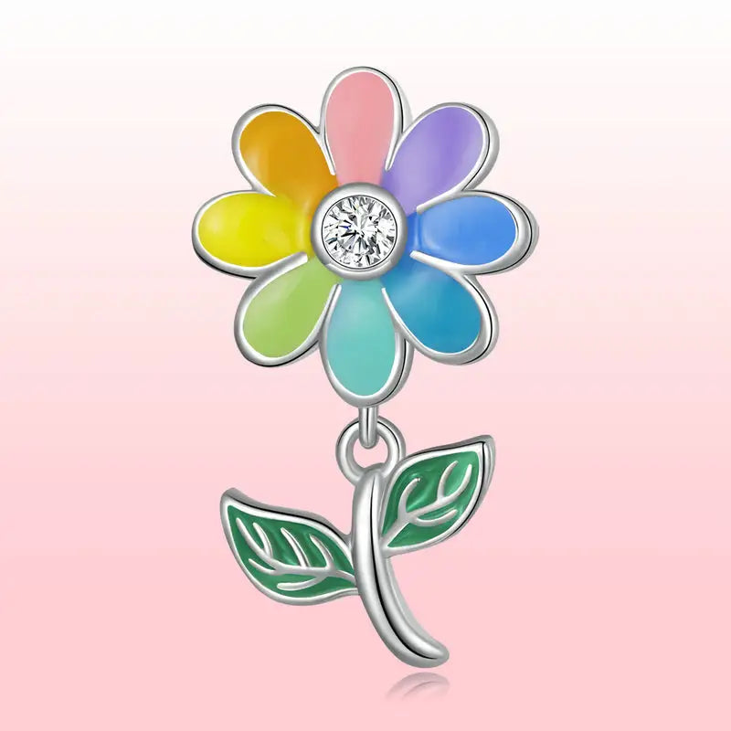 دلاية انسيال فضة عيار 925 علي شكل زهرة عباد الشمس الملونة
