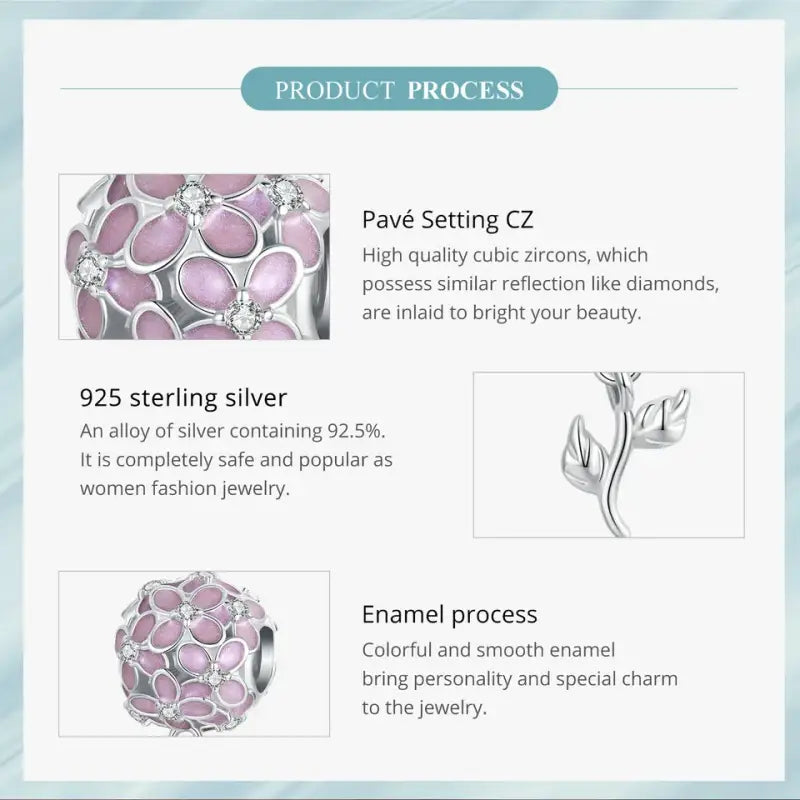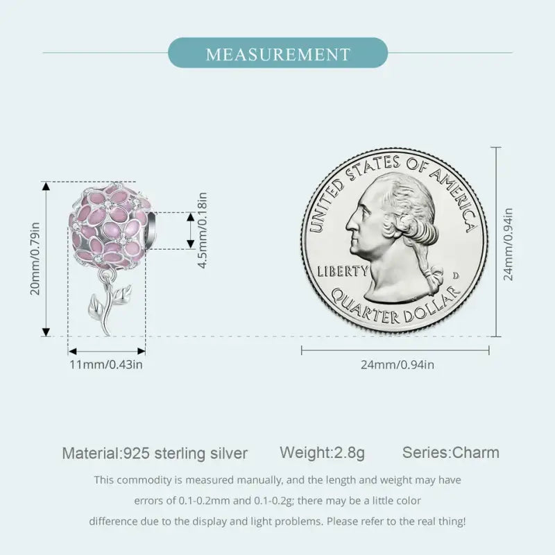 تعليقة كرة الزهرة الوردية - من الفضة الإسترلينية عيار 925، قطعة ساحرة وأنثوية ترمز إلى الجمال والرقة وأناقة الطبيعة. مصنوعة من الفضة الإسترلينية عيار 925، تتميز هذه التعليقة بتصميم كروي رقيق مزين بأزهار وردية معقدة، غالبًا ما تُزيّنها طبقة من المينا الوردي الناعم أو أحجار الزركون البراقة لإضفاء لمسة من التألق والرقي. مثالية لعشاق الطبيعة، أو محبي الزهور، أو لمن يقدرون الأناقة الخالدة، تُعدّ تعليقة كرة الزهرة الوردية إضافة رائعة لأي سوار أو قلادة، مما يضفي لمسة من السحر المزهر على مجموعة مجوهراتك.