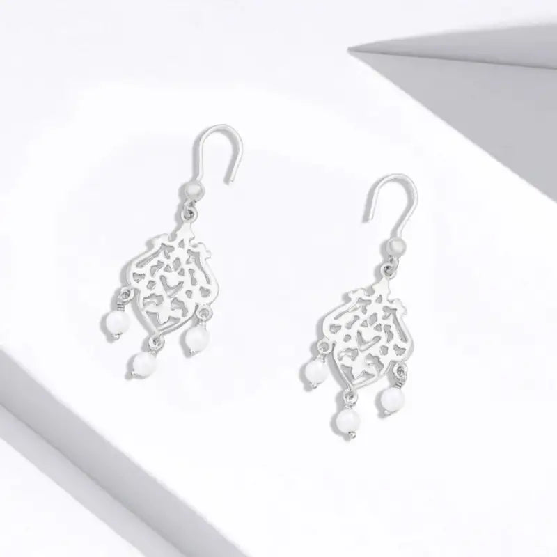 حلق من الفضة المصري، مُفرّع ومزيّن بفصوص من اللولي، يعكس فنّ الحرفية المصرية التقليدية بأناقة فريدة. تتميز قطعة الحلق هذه بتفاصيل دقيقة تظهر فيها مهارة حرفيّي الفضة في نحت وتشكيل الفصوص، مما يمنحها جمالاً يلفت الأنظار. تصميمه المفرّع يضيف لمسة من الرشاقة والأناقة، مما يجعلها مثالية للاستخدام اليومي أو للمناسبات الخاصة. هذا الحلق ليس فقط قطعة مجوهرات بل هو تعبير عن التراث الفنّي والثقافي لمصر، حيث يجمع بين الأناقة الكلاسيكية والتصميم العصري بطريقة متقنة تعكس الأصالة والجمال.