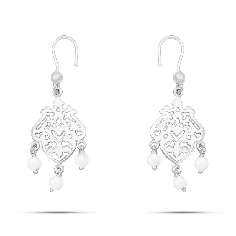 حلق فضة بتصميم عربي مفرغ ومرصع باحجار اللولي