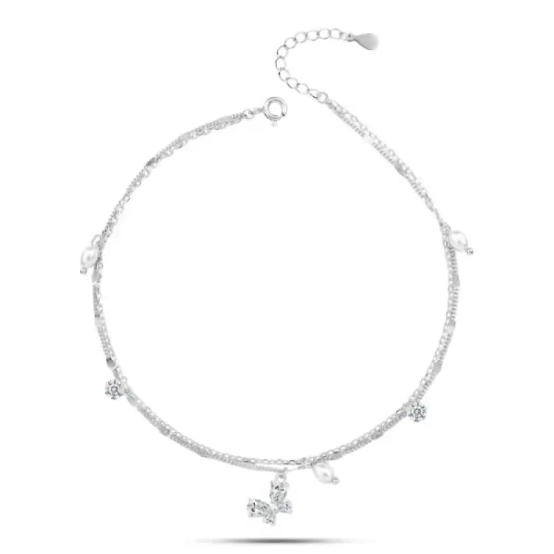 خلخال الفراشة طبقتين فضة عيار 925 مرصع بالزركون