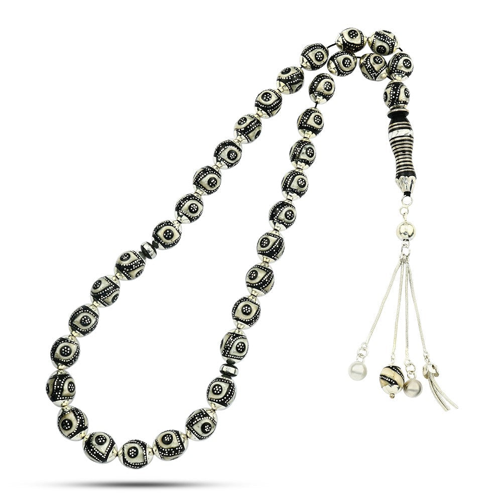 سبحه من اليسر الفاخر مطعمه بالفضة والفطران والعاج , 33حبة