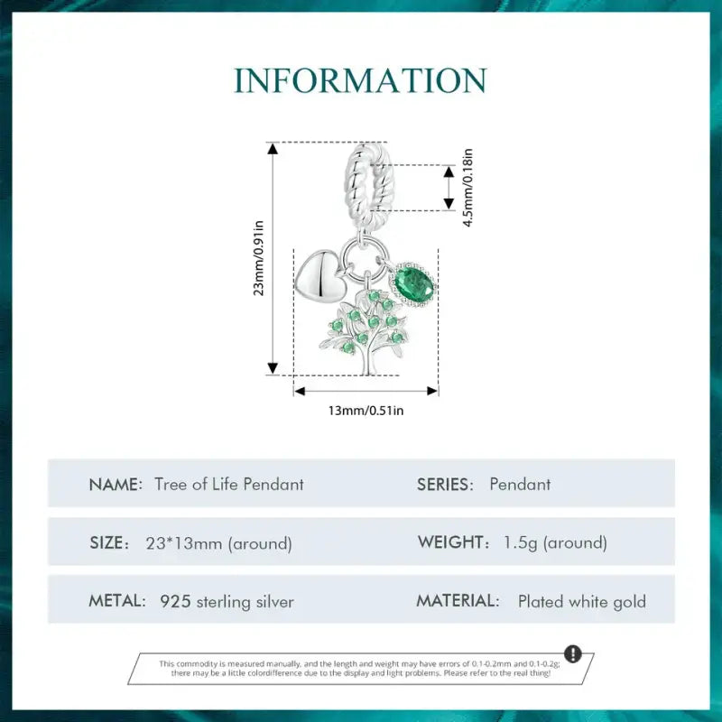 هذه القطعة الساحرة من الفضة الإسترلينية عيار 925 على شكل شجرة الحياة هي قطعة خالدة وذات مغزى، ترمز إلى النمو والقوة والحكمة والترابط بين كل أشكال الحياة. تتميز هذه القطعة الساحرة بتصميم شجرة معقدة ذات فروع وجذور مفصلة بشكل جميل، وتمثل الرابطة العميقة بين الأسرة والطبيعة والنمو الشخصي. مصنوعة من الفضة الإسترلينية عالية الجودة، تضمن هذه القطعة الساحرة المتانة واللمعان الرائع والشعور بخفة الوزن، مما يجعلها مثالية للارتداء اليومي. يسمح التصميم المخرم الدقيق بمرور الضوء، مما يعزز أناقته ويمنحه مظهرًا رشيقًا وجيد التهوية. قد تتضمن بعض الاختلافات لمسات من الزركون اللامع، أو تفاصيل مؤكسدة للعمق، أو طلاء ذهبي رقيق على الأوراق، مما يضيف لمسة إضافية من الجمال.