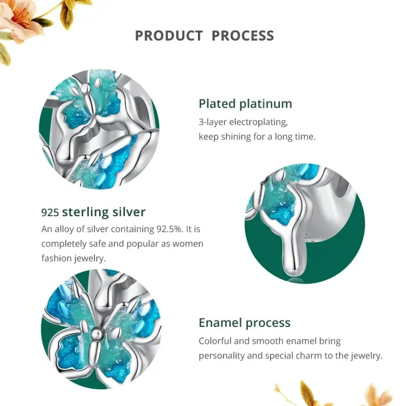 دلاية انسيال علي شكل فراشة زرقاء فضة عيار 925