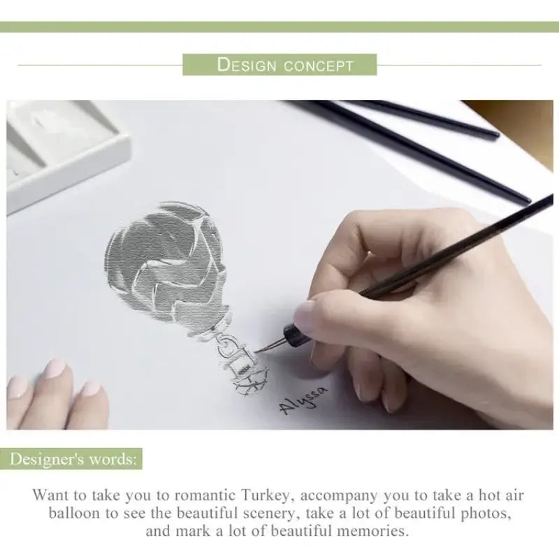 تعليقة مناطيد الهواء الساخن التركية - فضة إسترلينية عيار 925، قطعة ساحرة وجريئة مستوحاة من مناطيد الهواء الساخن الشهيرة في كابادوكيا، تركيا. مصنوعة من الفضة الإسترليني عيار 925، تتميز هذه التعليقة بتصميم منطاد هواء ساخن بتفاصيل بديعة، ترمز إلى الحرية والسفر وروح المغامرة. قد تتضمن بعض التصاميم مينا ملونًا أو لمسات من الزركون المتلألئ، لتُجسّد سحر التحليق فوق المناظر الطبيعية الخلابة. تعليقة مناطيد الهواء الساخن التركية مثالية لعشاق السفر والحالمين والباحثين عن آفاق جديدة، وهي إضافة أنيقة وهادفة لأي سوار أو قلادة.