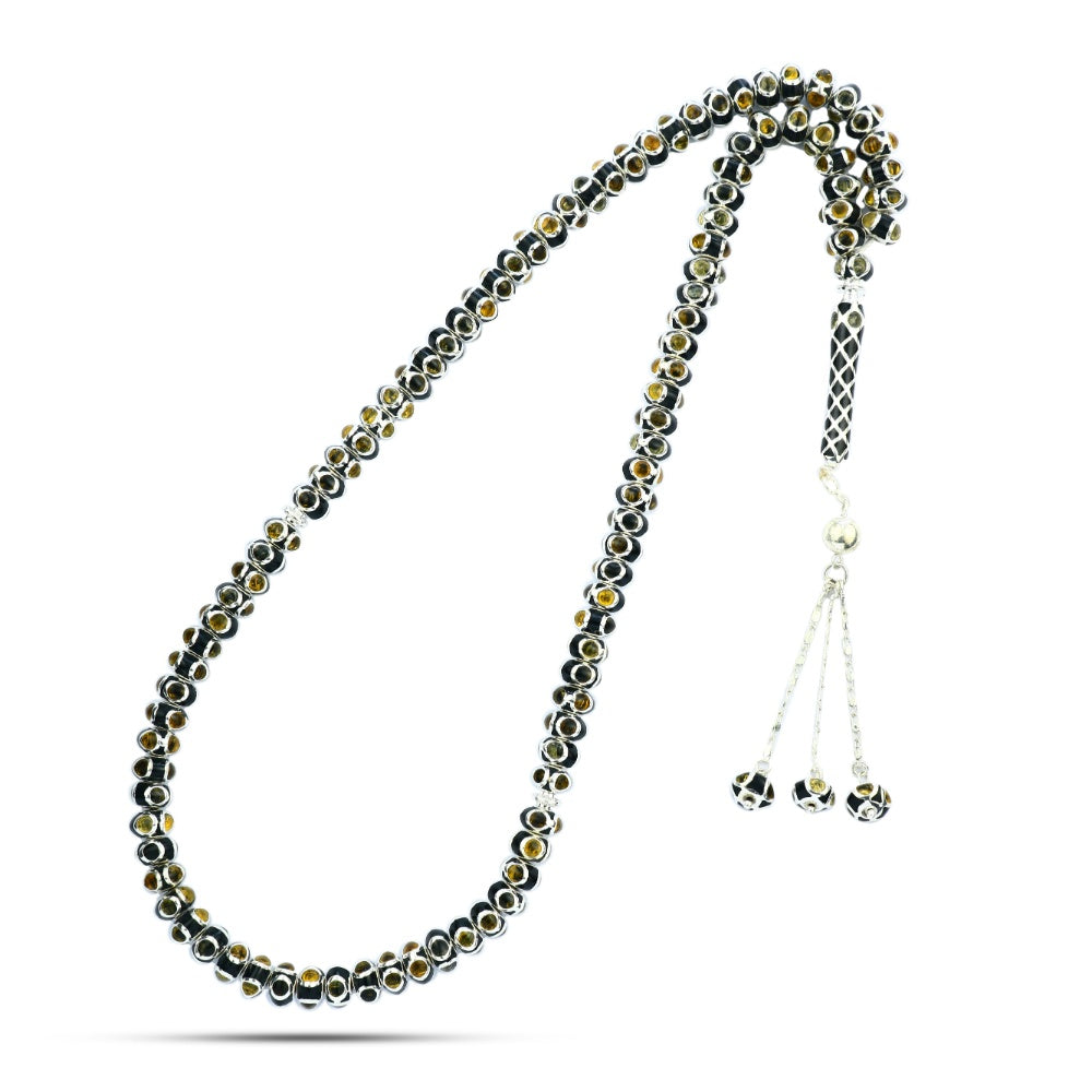 سبحه من اليسر الطبيعي مطعمة بالفضة والكهرمان , 99حبة