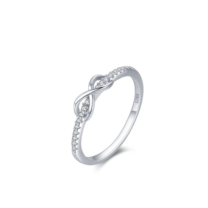 خاتم من الفضة عيار 925 مرصع بأحجار الزركون بتصميم أنيق على شكل رمز “إنفينيتي” (∞)، مما يضفي لمسة من الفخامة والتميز. يتألق الخاتم بأحجار الزركون اللامعة التي تزين شكل الإنفينيتي، وتضفي عليه بريقًا جذابًا. التصميم يجمع بين الرقي والحداثة، مع إظهار تفاصيل دقيقة تزيد من جاذبيته. هذا الخاتم يعد خيارًا رائعًا كهدية مميزة أو كإضافة أنيقة لإطلالتك اليومية، بفضل تصميمه الفريد الذي يعبر عن الأبدية والجمال.