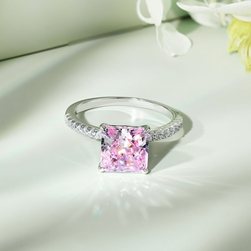 خاتم فضة عيار 925 متوج بحجر من ايس كراشد زركون روز مربع الشكل