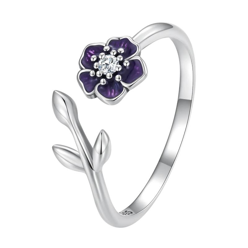 خاتم فضة عيار 925 علي شكل وردة ملونة