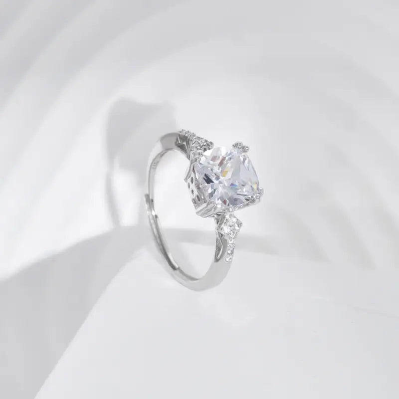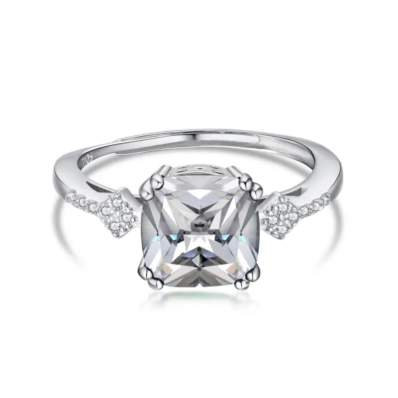 خاتم فضة عيار 925 متوج بحجر من الزركون مربع الشكل