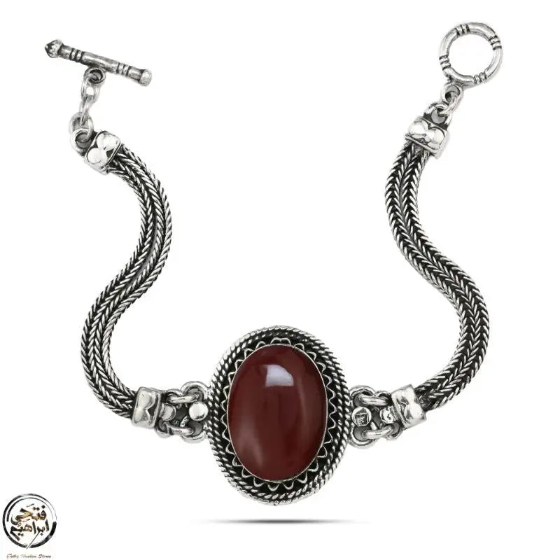 سوار الفضة العربي النسائي، المتوج بحجر عقيق، قطعة آسرة تجسد أناقة المجوهرات العربية وثرائها الثقافي. صُنع هذا السوار من فضة عالية الجودة، ويتميز بتصاميم معقدة، تشمل أعمالاً دقيقة وأنماطاً هندسية وزخارف نباتية تعكس براعة المنطقة وتقاليدها. يتوسطه حجر عقيق مرصع بشكل جميل، يبرز عادةً مجموعة من الألوان الدافئة كالأحمر الداكن والبني والأخضر. لا يُقدّر هذا الحجر لجماله فحسب، بل أيضاً لخصائصه الوقائية والعلاجية المعتقدة. يُضفي الإطار الذي يشبه التاج على الحجر مظهراً ملكياً يُذكرنا بالحلي التي كانت ترتديها النساء في المجتمعات العربية التاريخية. يُعد هذا السوار رمزاً للتراث والهوية، مما يجعله قطعة ثمينة للمناسبات الخاصة أو الارتداء اليومي.