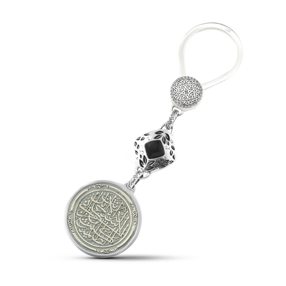 ميدالية مفاتيح فضة بتصميم إسلامي مزخرف(لا إله إلا أنت سبحانك إني كنت من الظالمين)