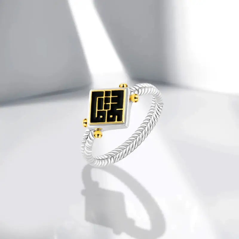 خاتم يعبر عن أرقى المشاعر بتصميم أنيق ومميز! ✨ مصنوع من فضة مصرية عيار 925 بنقوش عربية أنيقة تحمل كلمة "شوق"، ما يجعله قطعة فريدة تحمل طابعًا شخصيًا راقيًا. الإطار مزين بلمسات كروية مطلية بالذهب تضيف لمسة فخامة وجاذبية لا تقاوم.