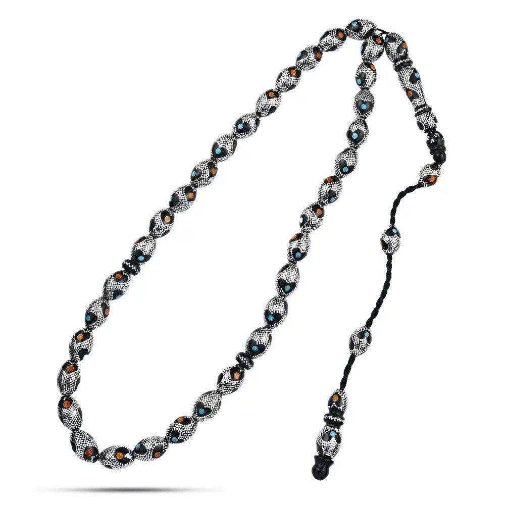 سبحه من اليسر الطبيعي مطعمة بالفضة والفيروز والكهرمان, 33حبة