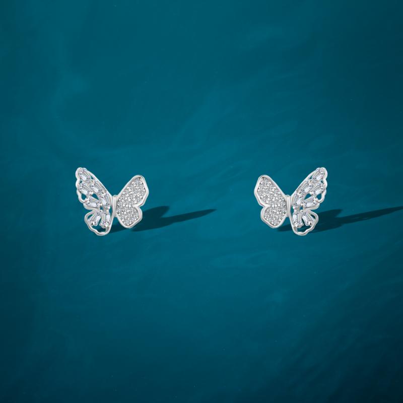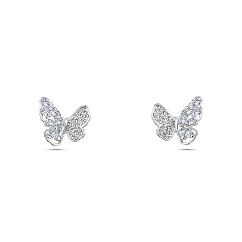 حلق فراشة متوجة بالزركون فضة عيار 925