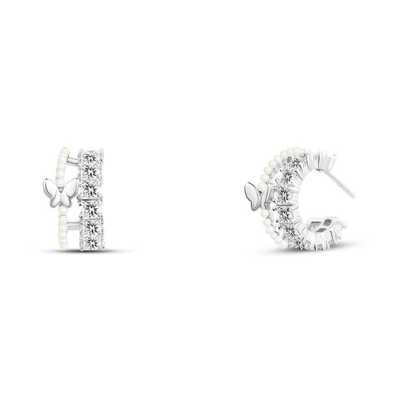 حلق فضة عيار 925 شكل فراشة مرصع بفصوص الزركون و اللولى
