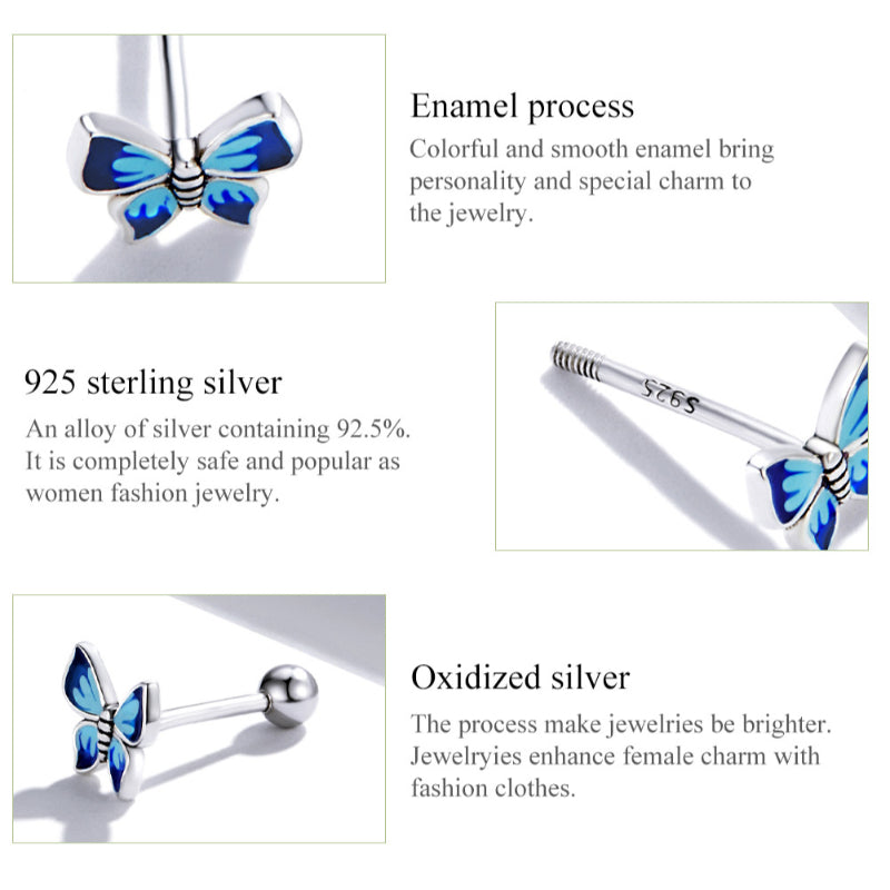 أقراط الفراشة الفضية عيار 925 قطعة أنيقة وساحرة تُجسّد جمال الطبيعة. مصنوعة من فضة إسترلينية عيار 925 عالية الجودة، تتميز هذه الأقراط بمتانتها ولمعانها الأخّاذ. تتميز بتصميمات فراشات متقنة، ترمز إلى التحوّل والرشاقة والحرية. تُبرز الحرفية الدقيقة أجنحتها الرقيقة وتُضفي عليها لمسةً ساحرة، مما يجعلها مثالية للارتداء اليومي والمناسبات الخاصة. تُعدّ هذه الأقراط هديةً رائعةً لأعياد الميلاد والذكرى السنوية، أو حتى لإضفاء البهجة على يومٍ ما. سواءً ارتديتها بمفردها أو مع مجوهرات أخرى، تُضفي أقراط الفراشة الفضية عيار 925 لمسةً مرحةً وأنيقةً على أي إطلالة، مُحتفيةً بجمال الحياة والطبيعة.