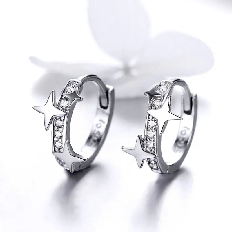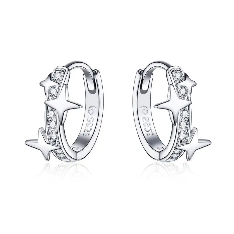هذه الأقراط الساحرة على شكل نجمة مصنوعة من الفضة الإسترلينية عيار 925 عالية الجودة، وتتميز بتصميم غريب يجسد جوهر سماء الليل. تضيف صورة ظلية النجوم الدقيقة لمسة مرحة وأنيقة لأي زي، مما يجعلها مثالية للارتداء غير الرسمي والمناسبات الخاصة. خفيفة الوزن ومريحة، هذه الأقراط مثالية للاستخدام اليومي أو كهدية مدروسة لشخص مميز. استمتعي بسحر النجوم مع هذه الأقراط الجميلة التي تضفي بريقًا رائعًا على مجموعة مجوهراتك.