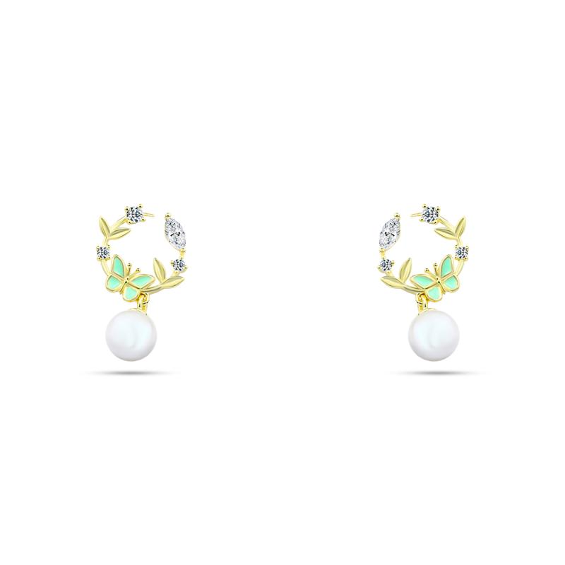 حلق فضة عيار 925 مطلي جولد متوج باللولي و الزركون اللامع