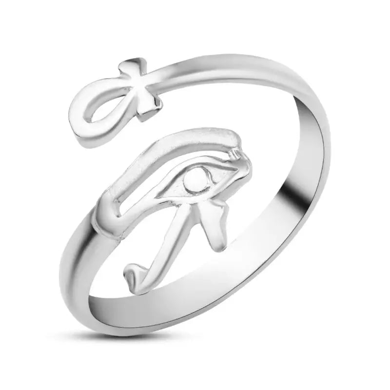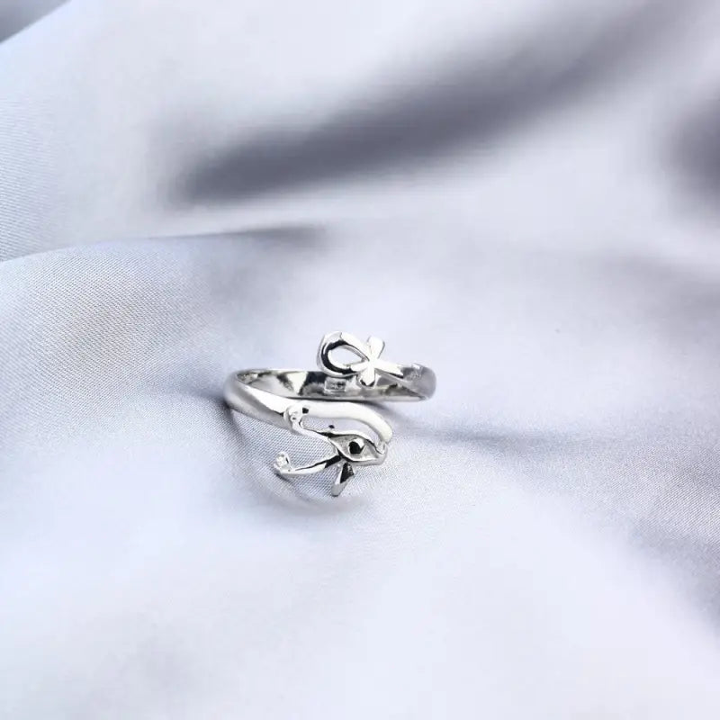 خاتم فضه حريمي عيار 925 على شكل مفتاح الحياة وعين حورس