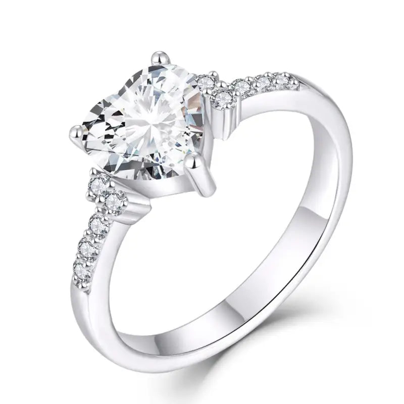 خاتم فضة عيار 925 على شكل قلب متوج بالزركون