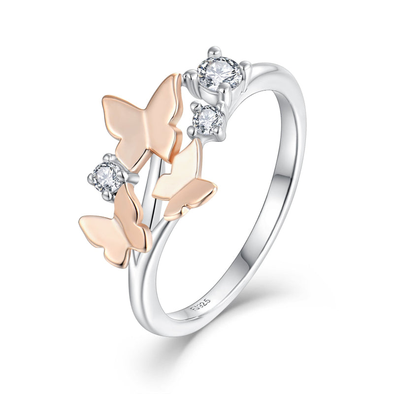 خاتم فضة عيار 925 مرصع بفصوص الزركون على شكل فراشات