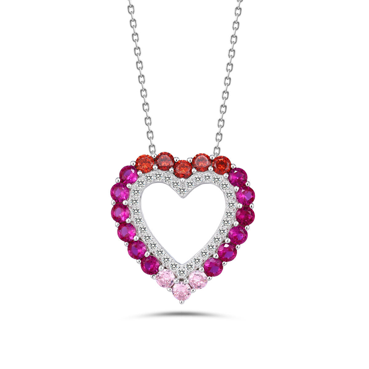 عقد فضة عيار 925 علي شكل قلب ملون