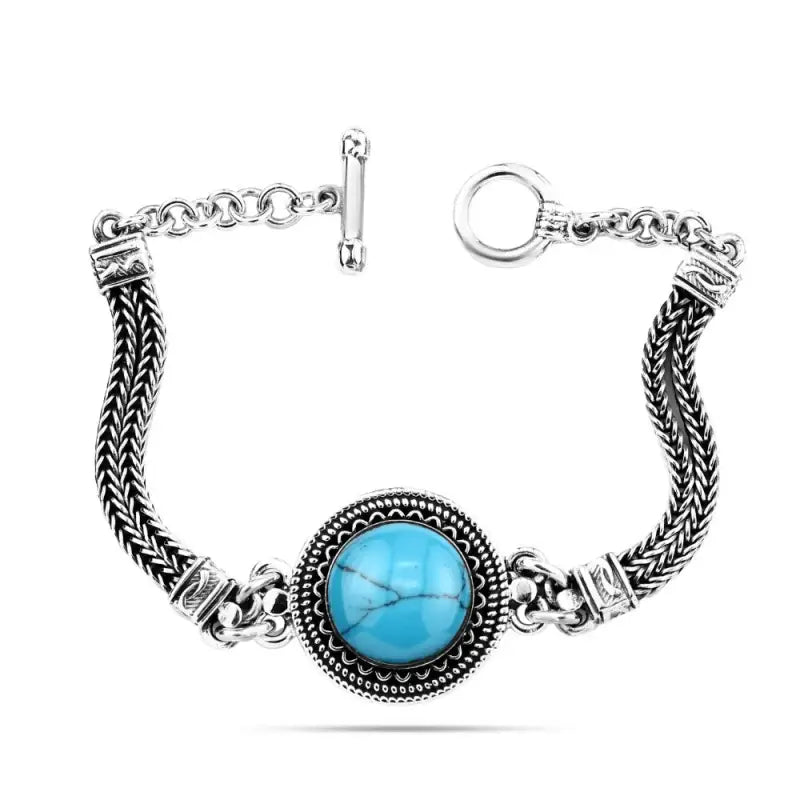 استمتعي بجمال وقوة التراث المصري القديم مع هذا السوار النسائي المصري المصنوع من الفضة الإسترلينية عيار 925، والمتوّج بأناقة بحجر فيروزي أصلي. مستوحى من التاريخ العريق والفن المصري، يرمز هذا السوار المصنوع يدويًا إلى الحماية والحكمة والتناغم الروحي. يُضفي حجر الفيروز، المُقدّر لخصائصه العلاجية والوقائية، لمسةً نابضةً بالحياة على هذا التصميم الأنيق، مما يجعله إكسسوارًا قويًا وأنيقًا في آنٍ واحد. سواءً ارتديته كرمز للفخر الثقافي أو قطعةً أنيقةً مميزة.