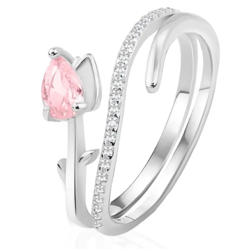 خاتم زهرة اللوتس فضة عيار 925 مرصع بالزركون