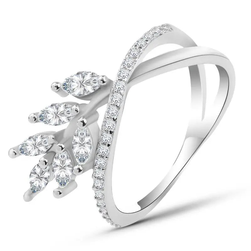 خاتم ورقة الشجر المتوجة بالزركون فضة عيار 925
