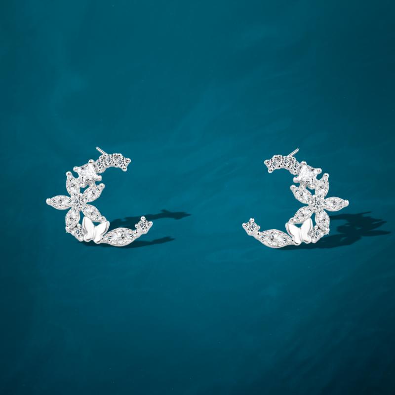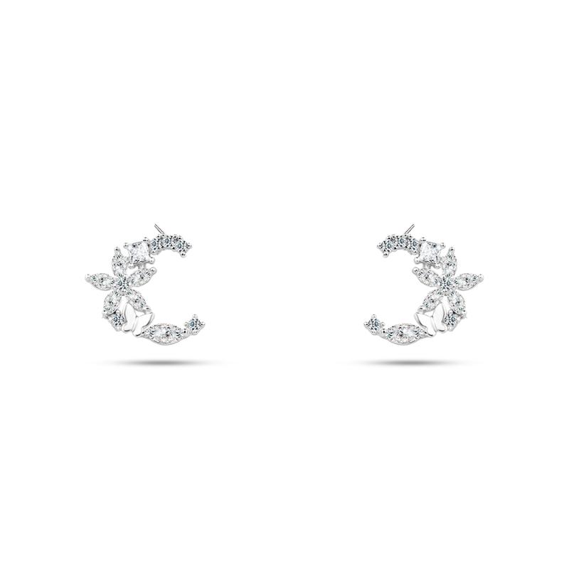 Flower earring featuring sparkling zirconia, crafted from 925 sterling silver. This elegant piece showcases a delicate floral design with a brilliant shimmer, adding a touch of sophistication to any outfit.